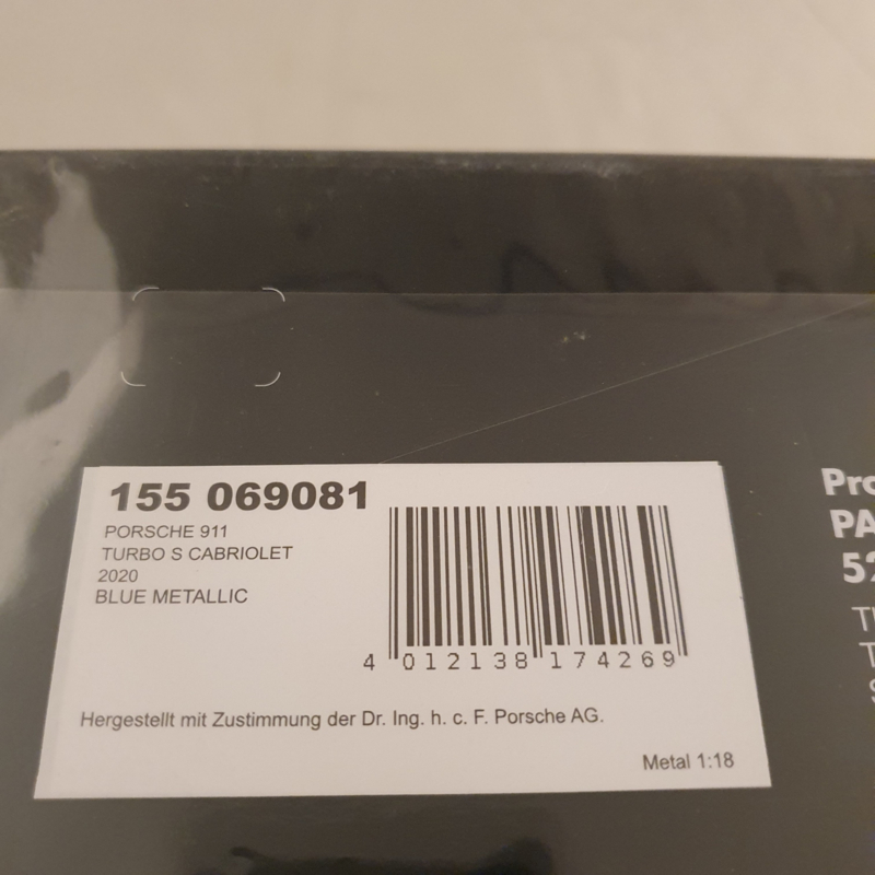 Porsche scale model of the 992 Turbo S Cabriolet 2020 in scale 1:18.